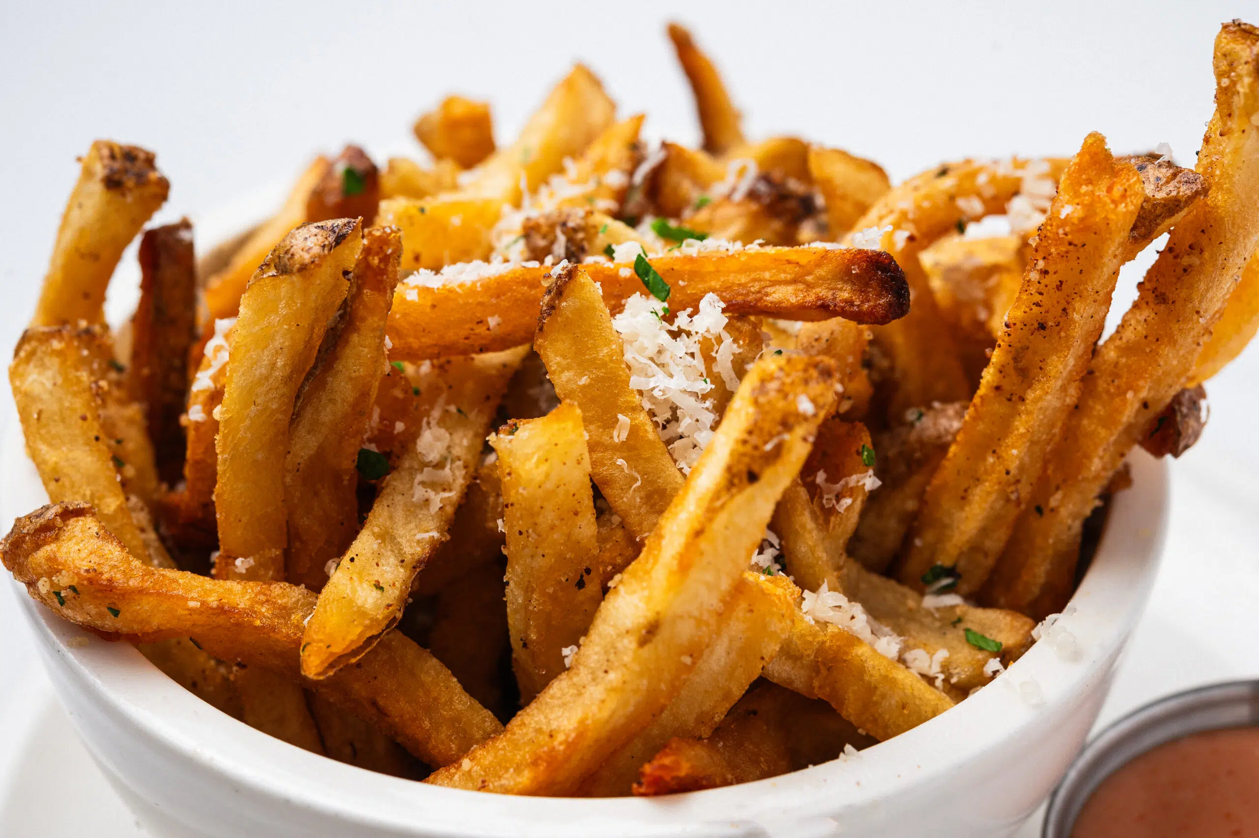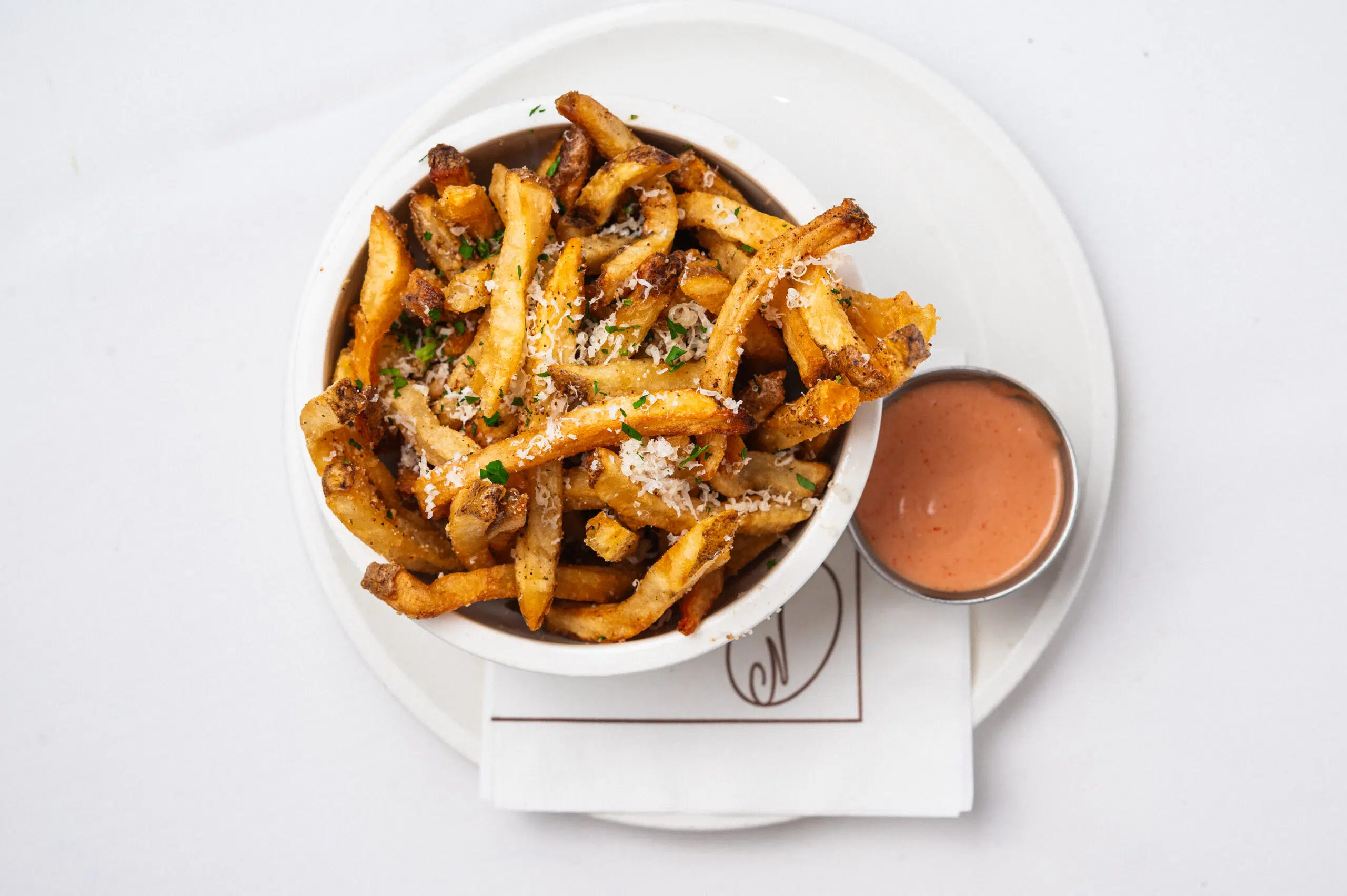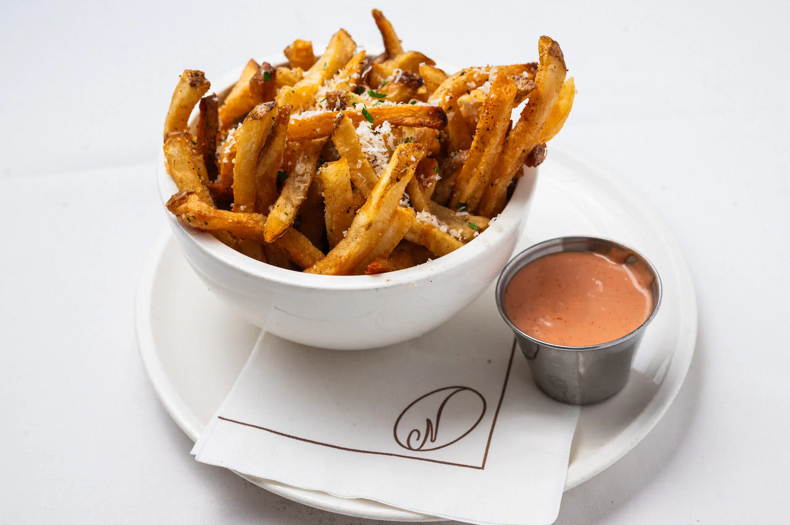 Idaho homecut potatoes, truffle infused salt, parmesan cheese, Sottocenere cheese
