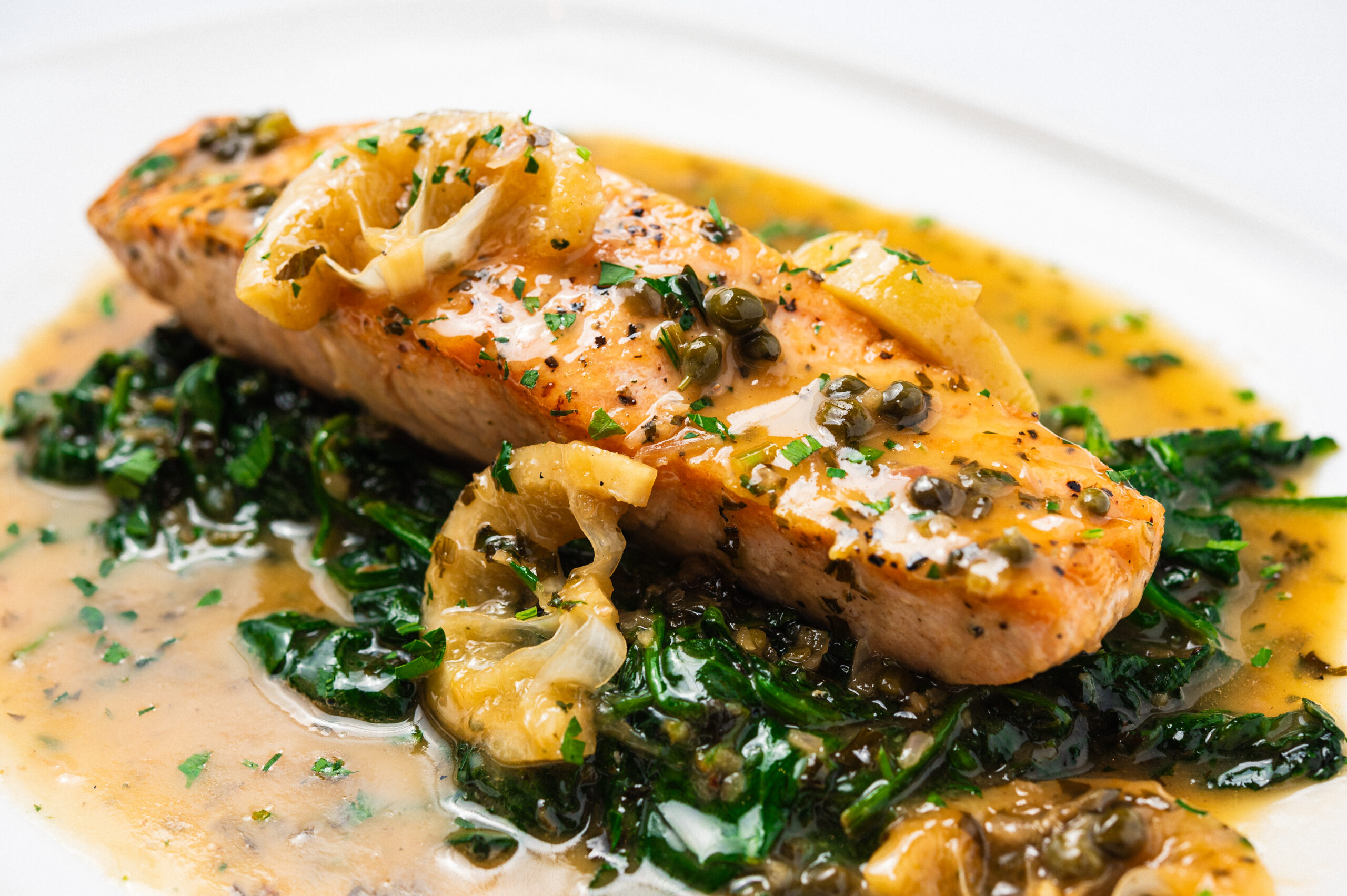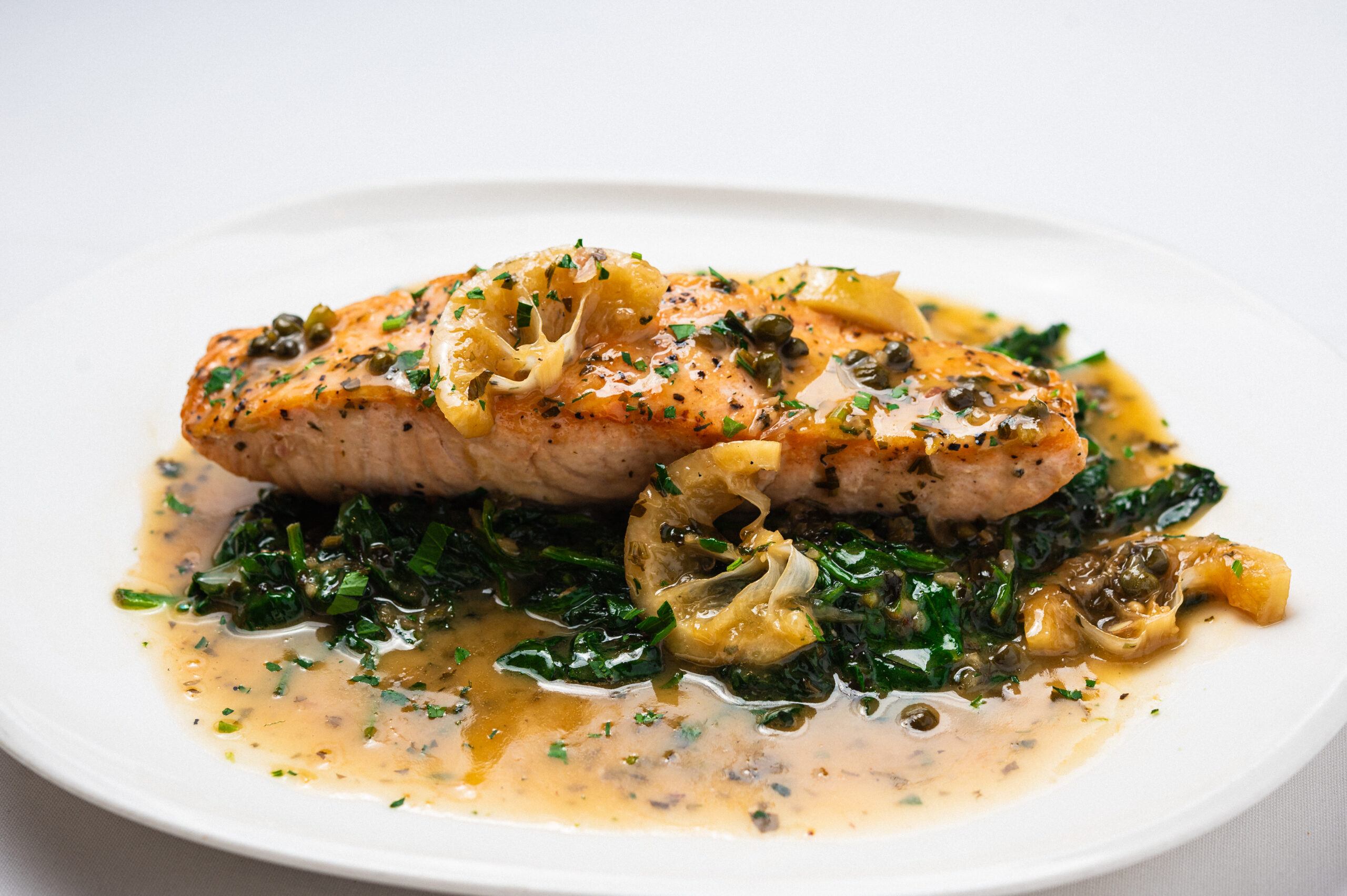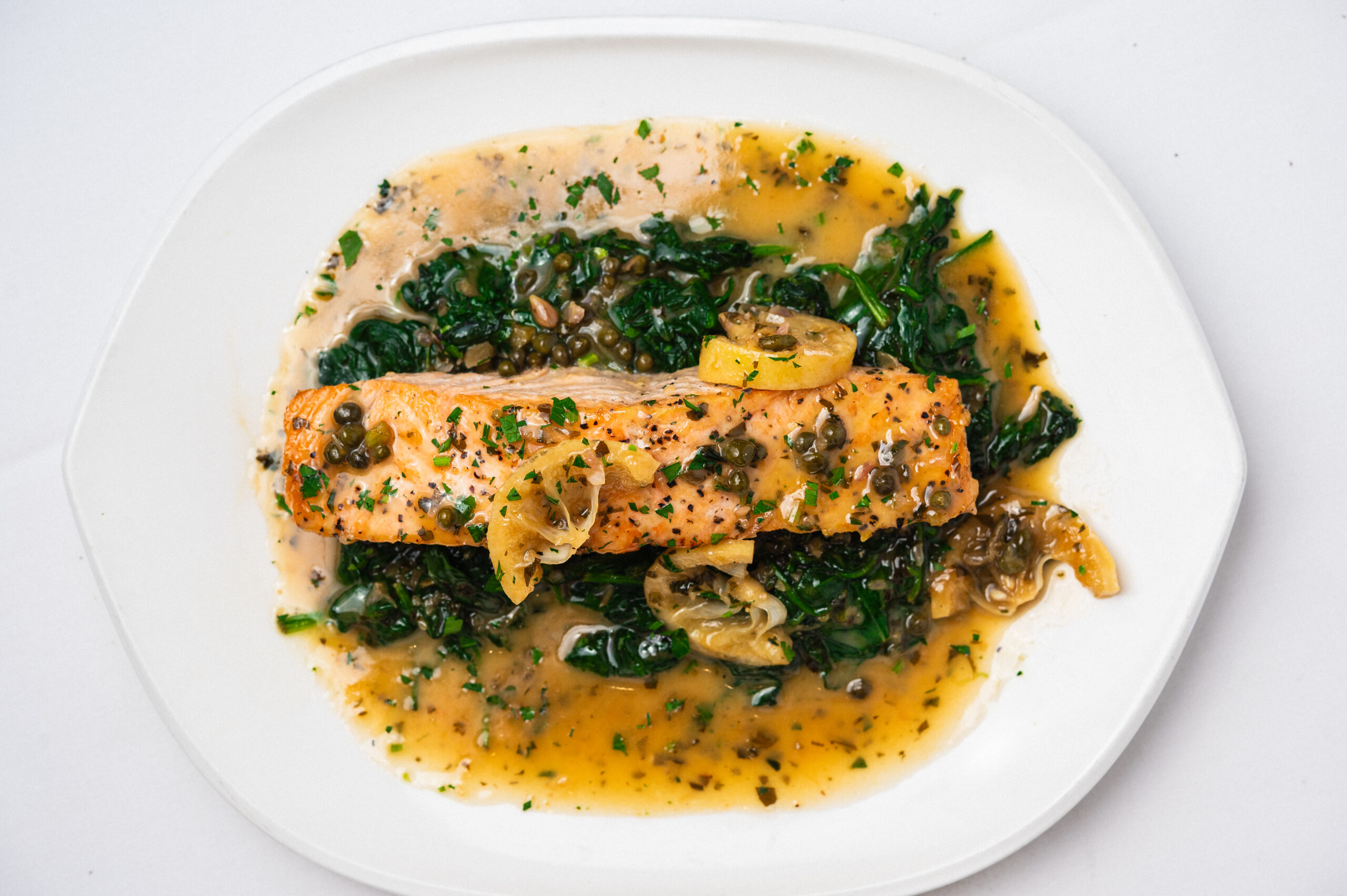 organic Scottish salmon, lemon caper sauce, sautéed spinach